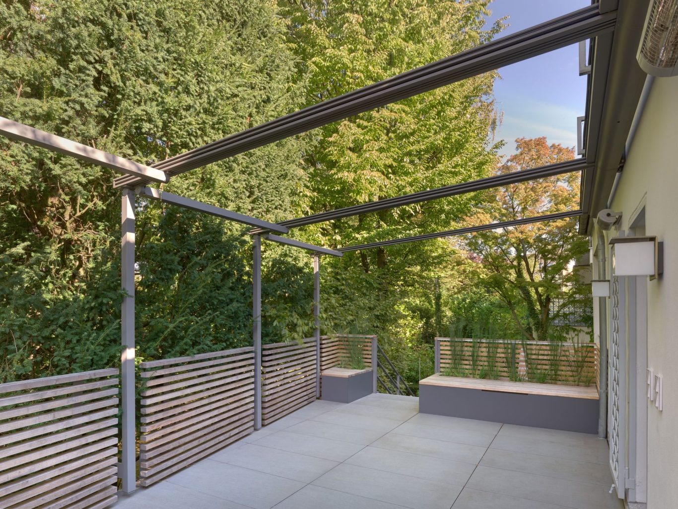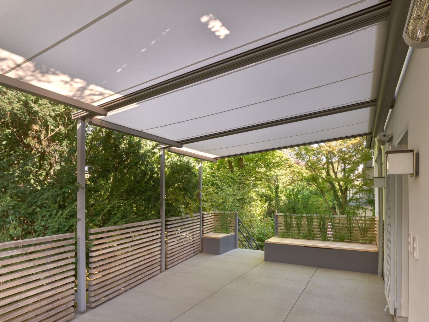 Neugestaltung Terrasse - Pergolamarkise aufgefahren
