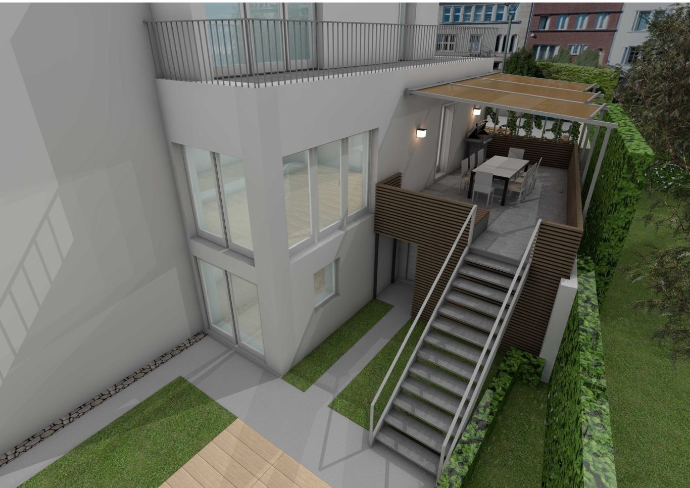 Neugestaltung Terrasse - Vorderansicht mit Treppe